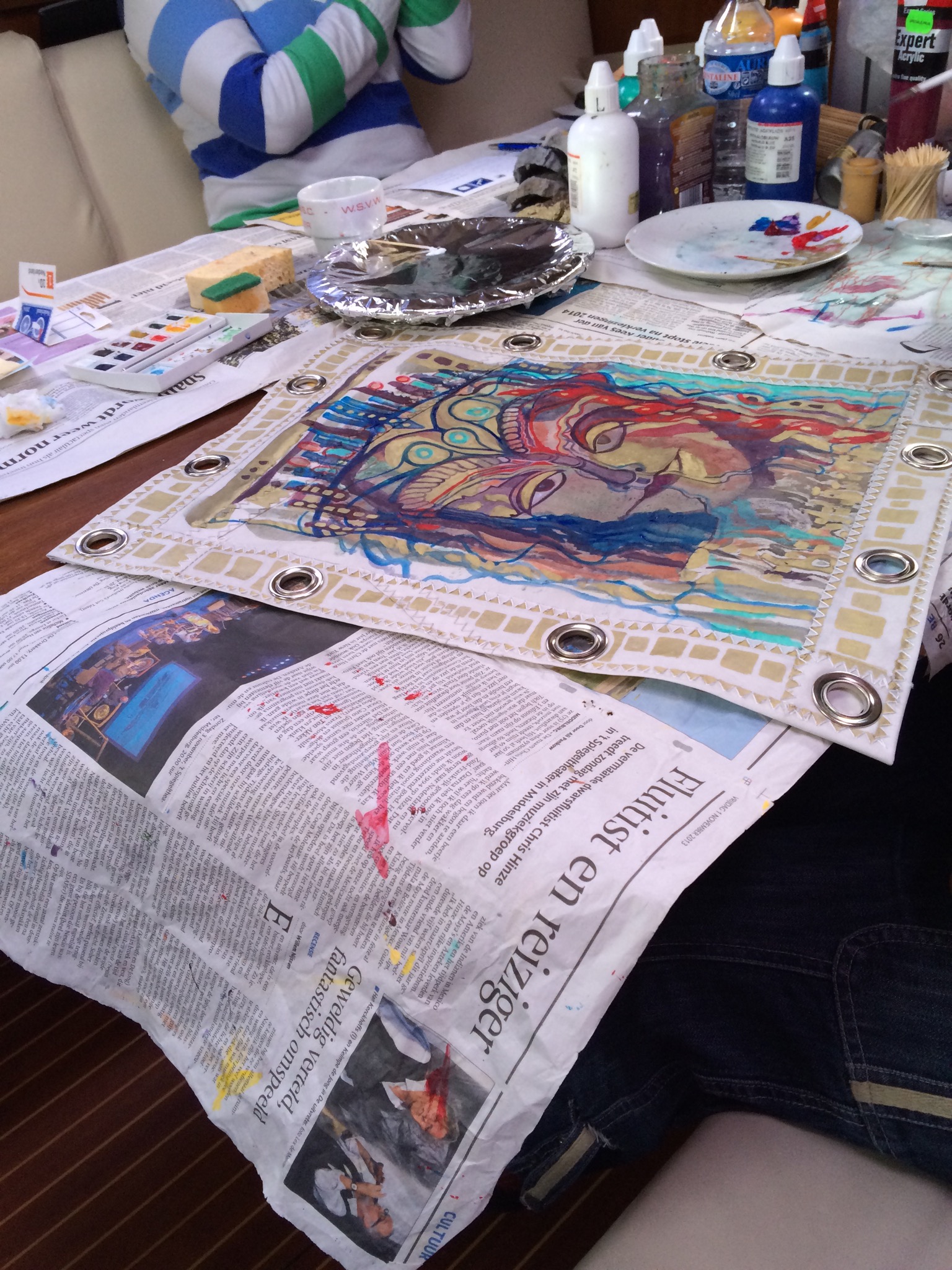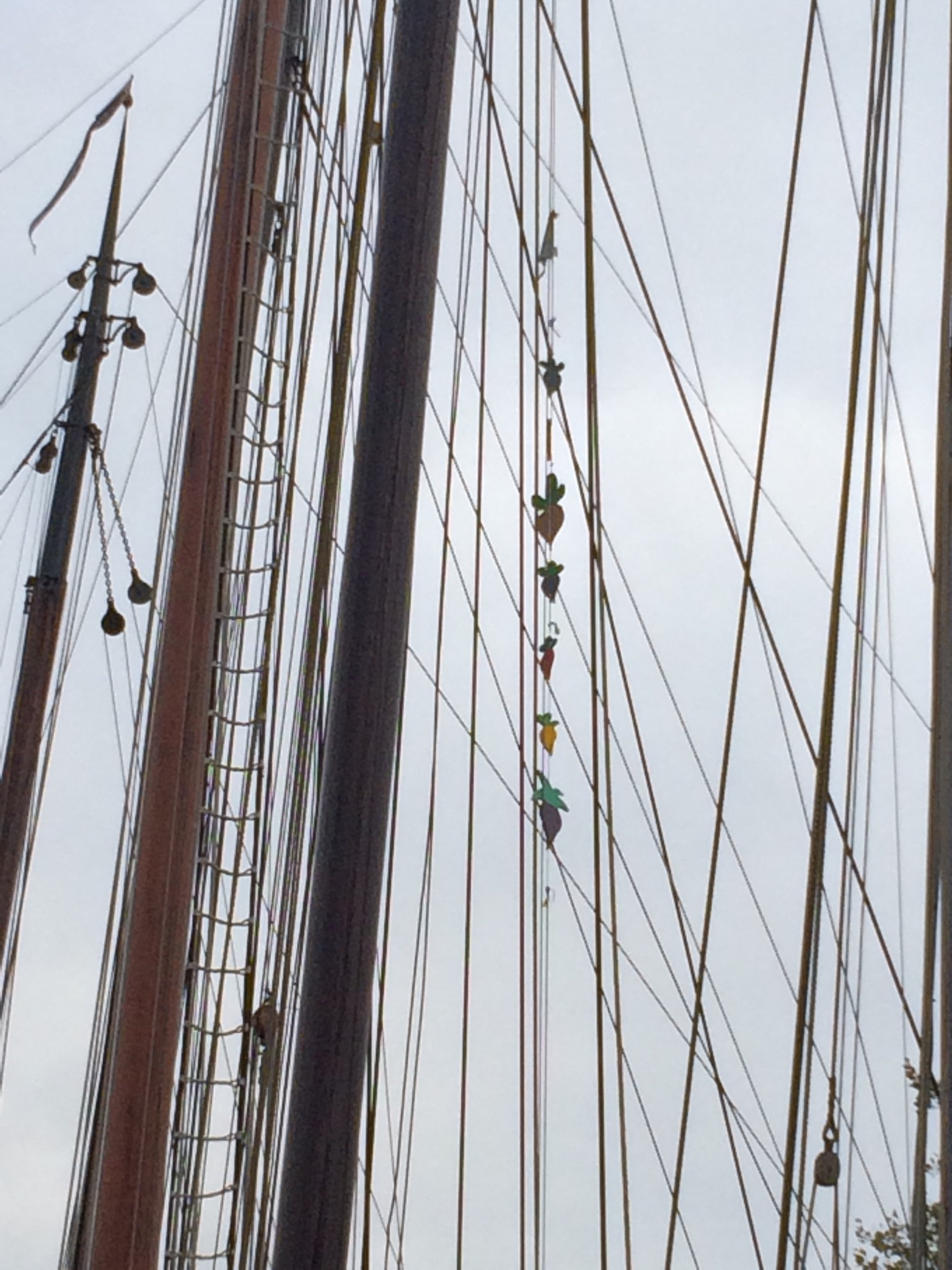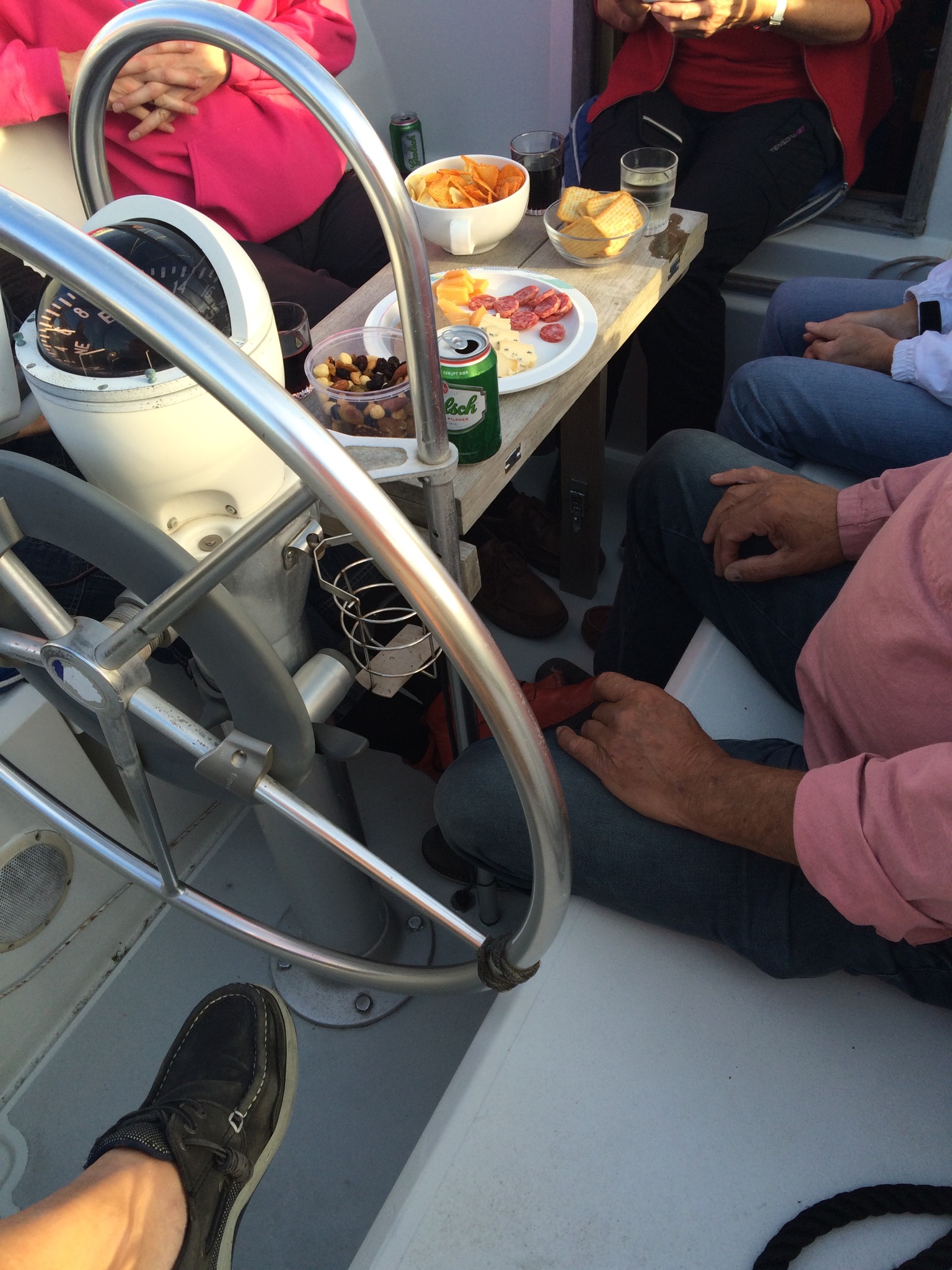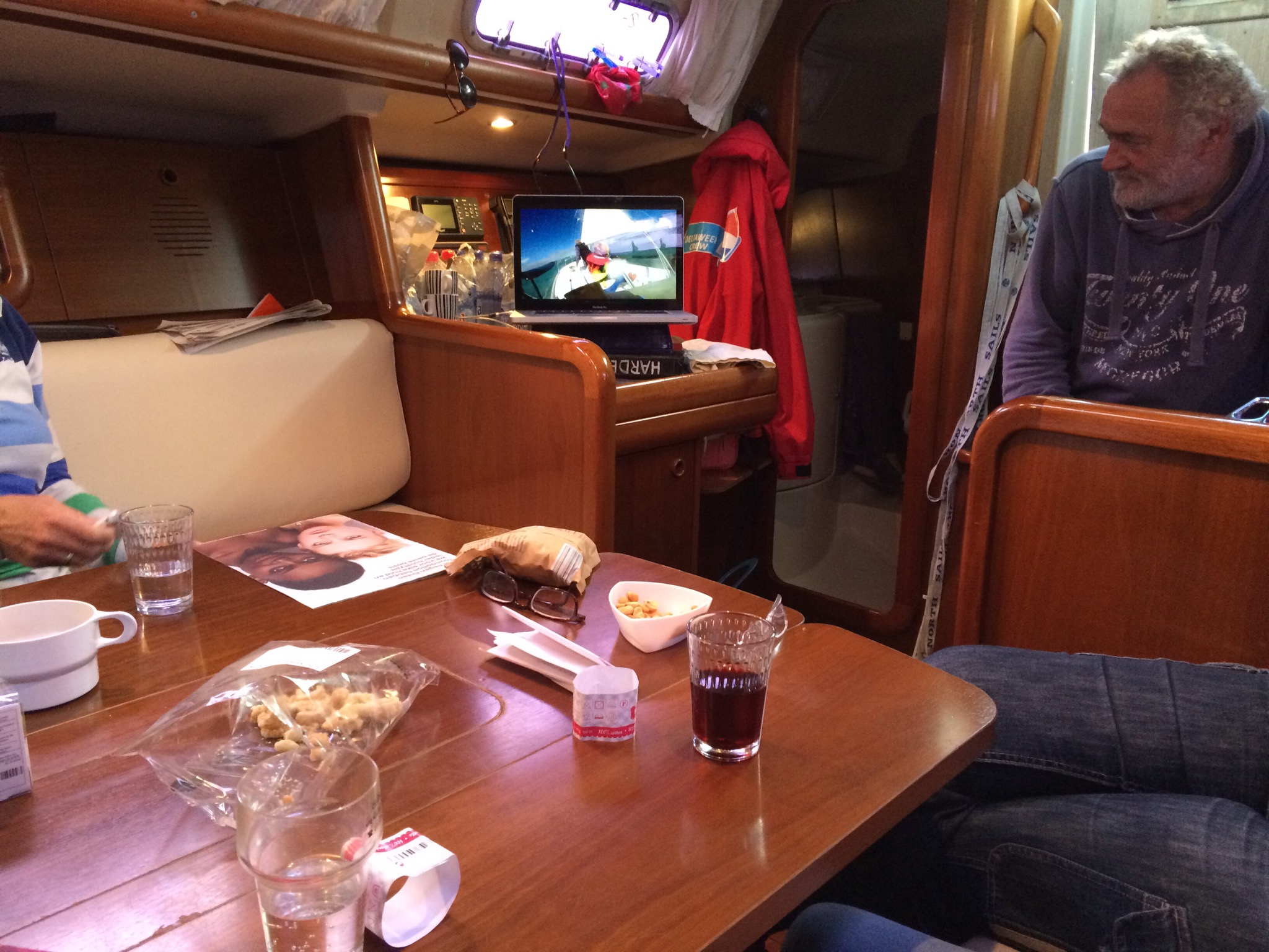Het zeilen gaat fijn, en hard. We kregen het niet op de foto, maar af en toe liepen we 6 knopen. Dat is met dit tuig Hard! Ok, het helpt wel dat het ook Hard waait.