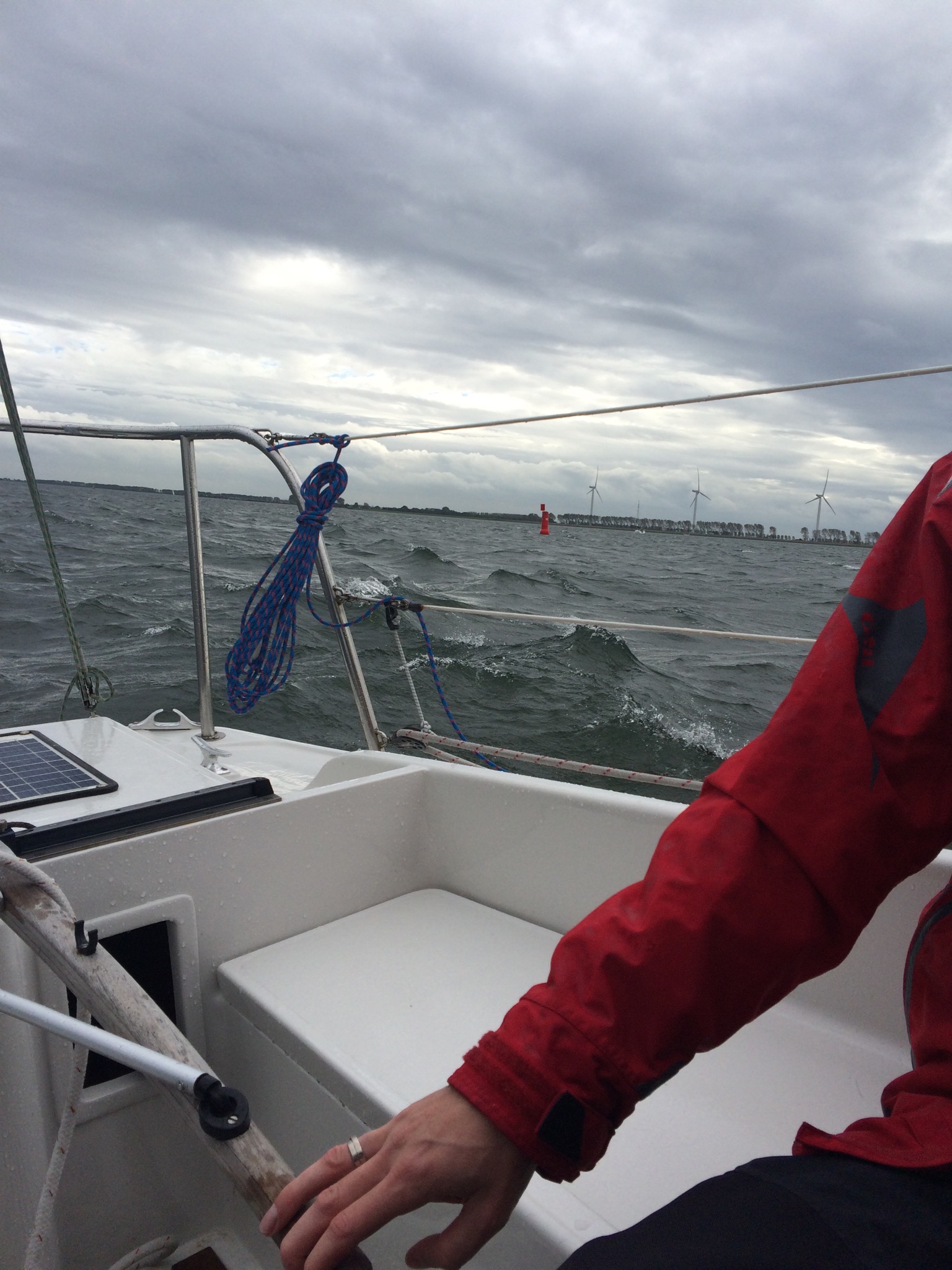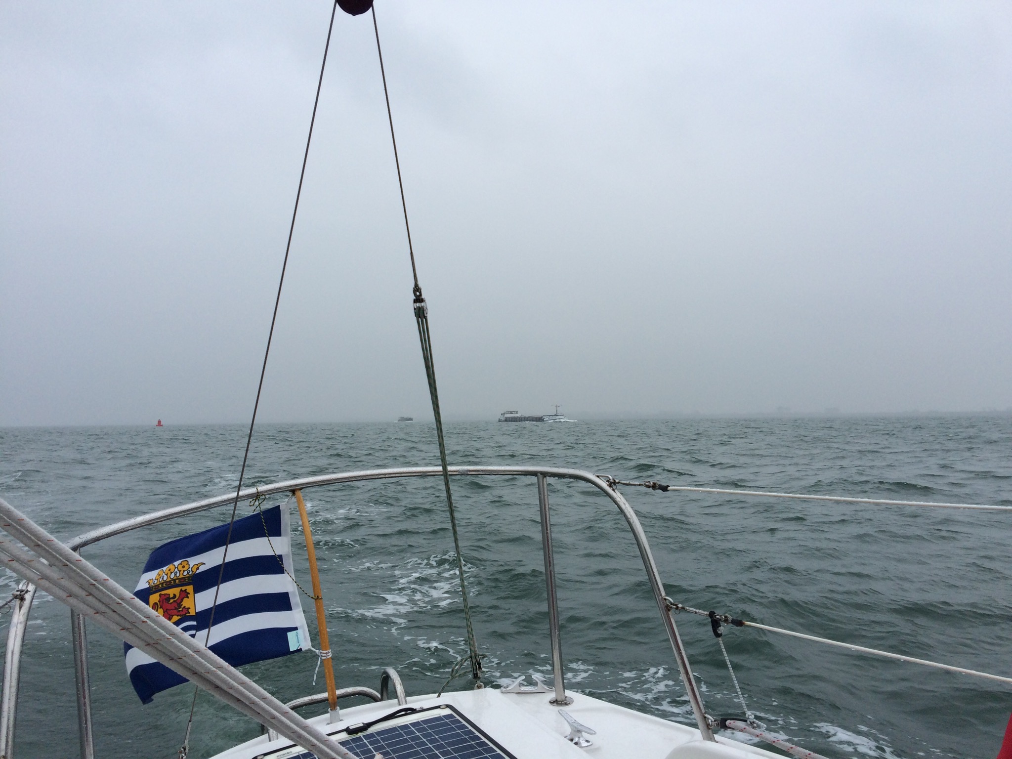 Als we door de Krammersluis zijn komt er nog wat wind bij. En regen. Blegh, geen fijn weer.