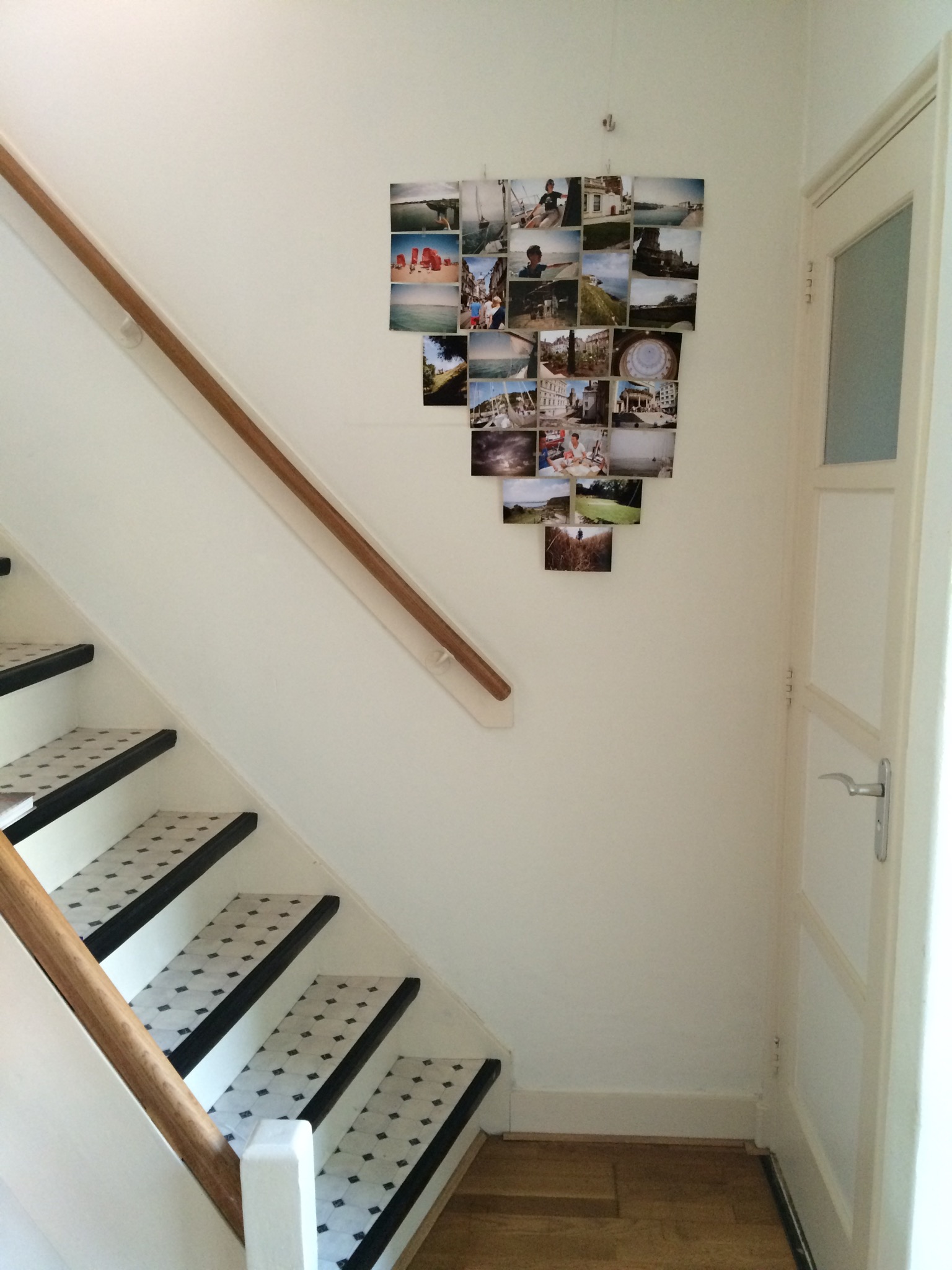Ik hing hem in de gang, onderaan de trap. Een stukje muur waar je recht op kijkt als je uit de woonkamer komt.