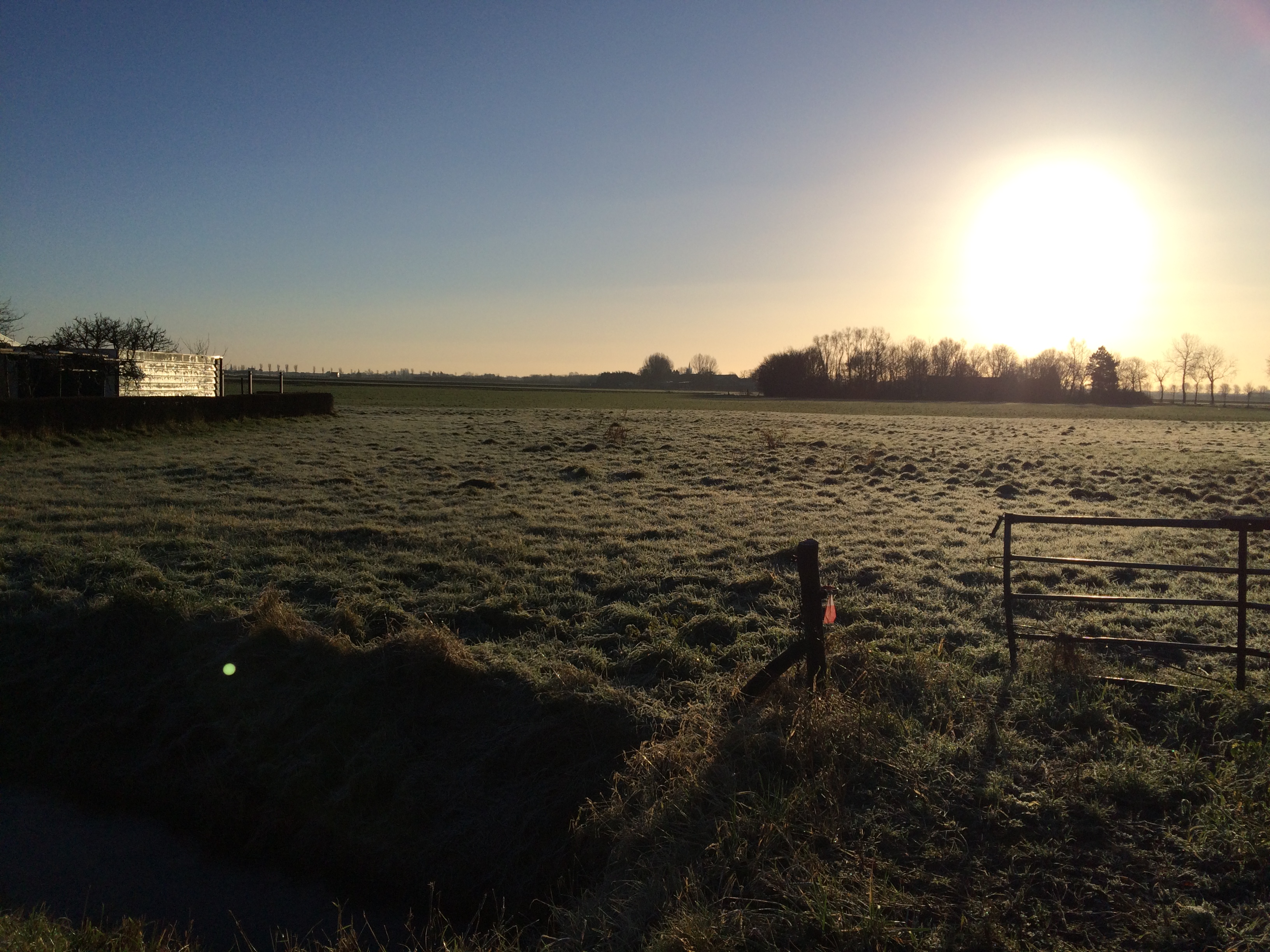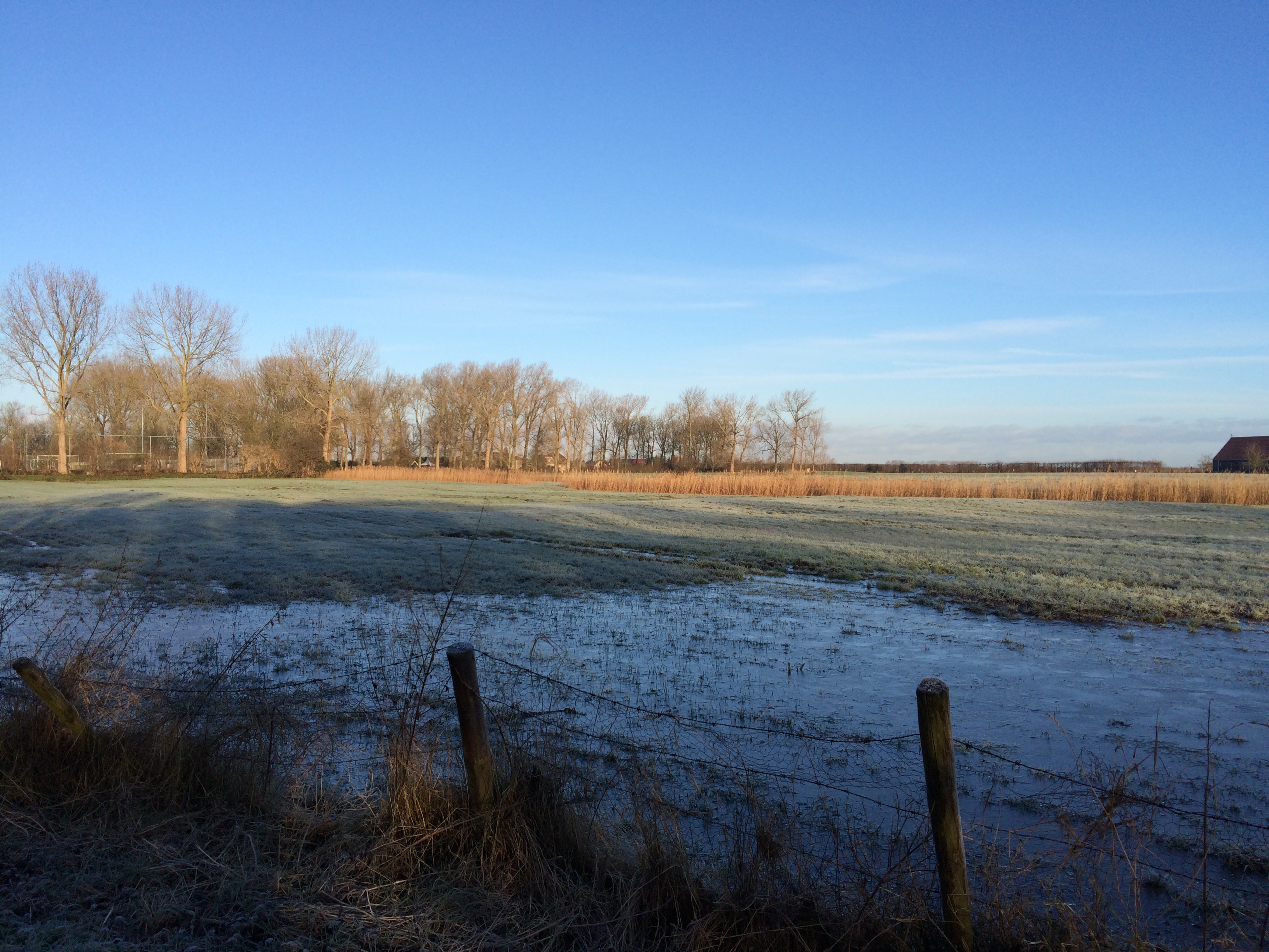 Vanmorgen zag het er buiten prachtig uit. Stralende zon en licht bevroren. Een grote verandering na een week storm en vooral ook veel regen.