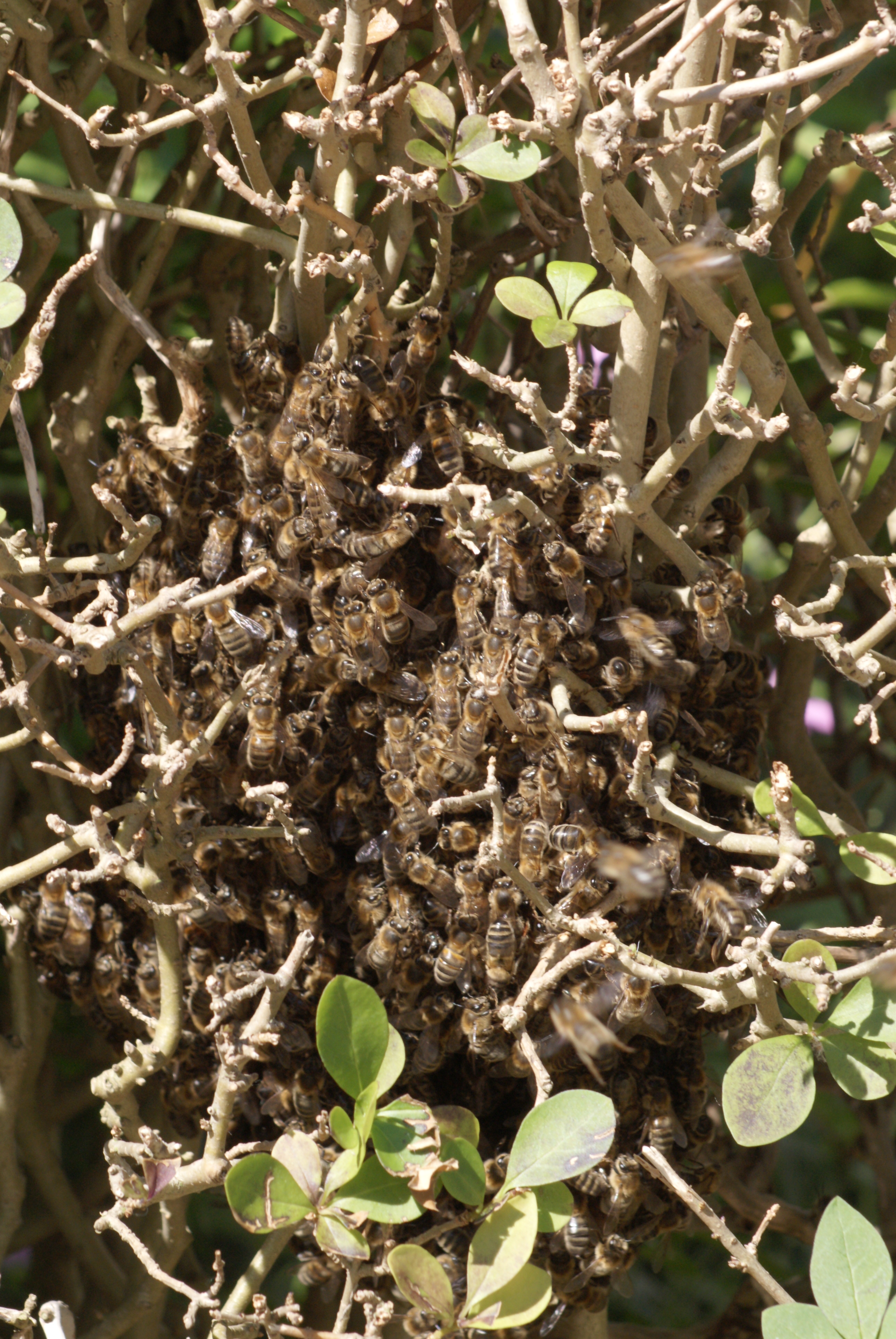 Overigens zouden de bijen na een dag of drie vanzelf weer uit de heg zijn vertrokken. Als bijen gaan zwermen hebben ze namelijk een voorraadje voedsel mee dat toereikend is voor ongeveer drie dagen. Na die tijd moeten ze dus weer op zoek naar eten.