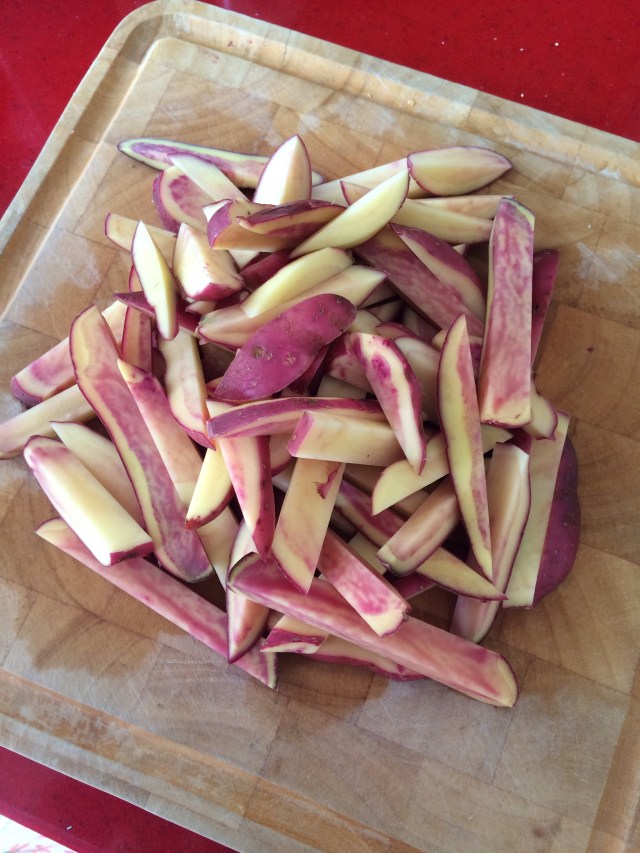 Deze zijn uit een paar ‘vergeten’ aardappeltjes van vorig jaar. Best nog een leuk oogstje zo.