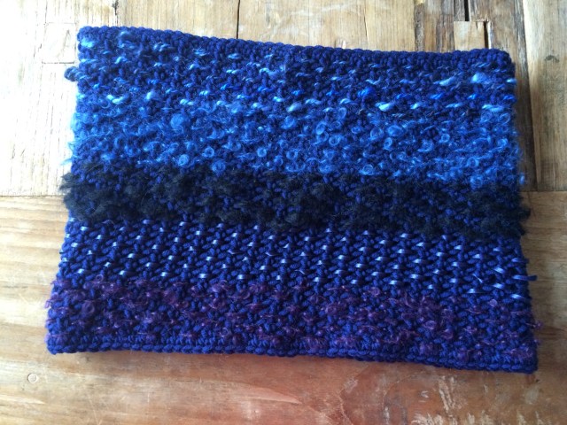 In elk geval: het werd een col, hij is heerlijk zacht en warm, de onbreibare wol is nog maar voor de helft op, de blauwe wol voor meer dan de helft, ik moet nodig weer naar de wolwinkel, het is weer voor warme dingen en mijn andere projecten voelen zich achtergesteld.