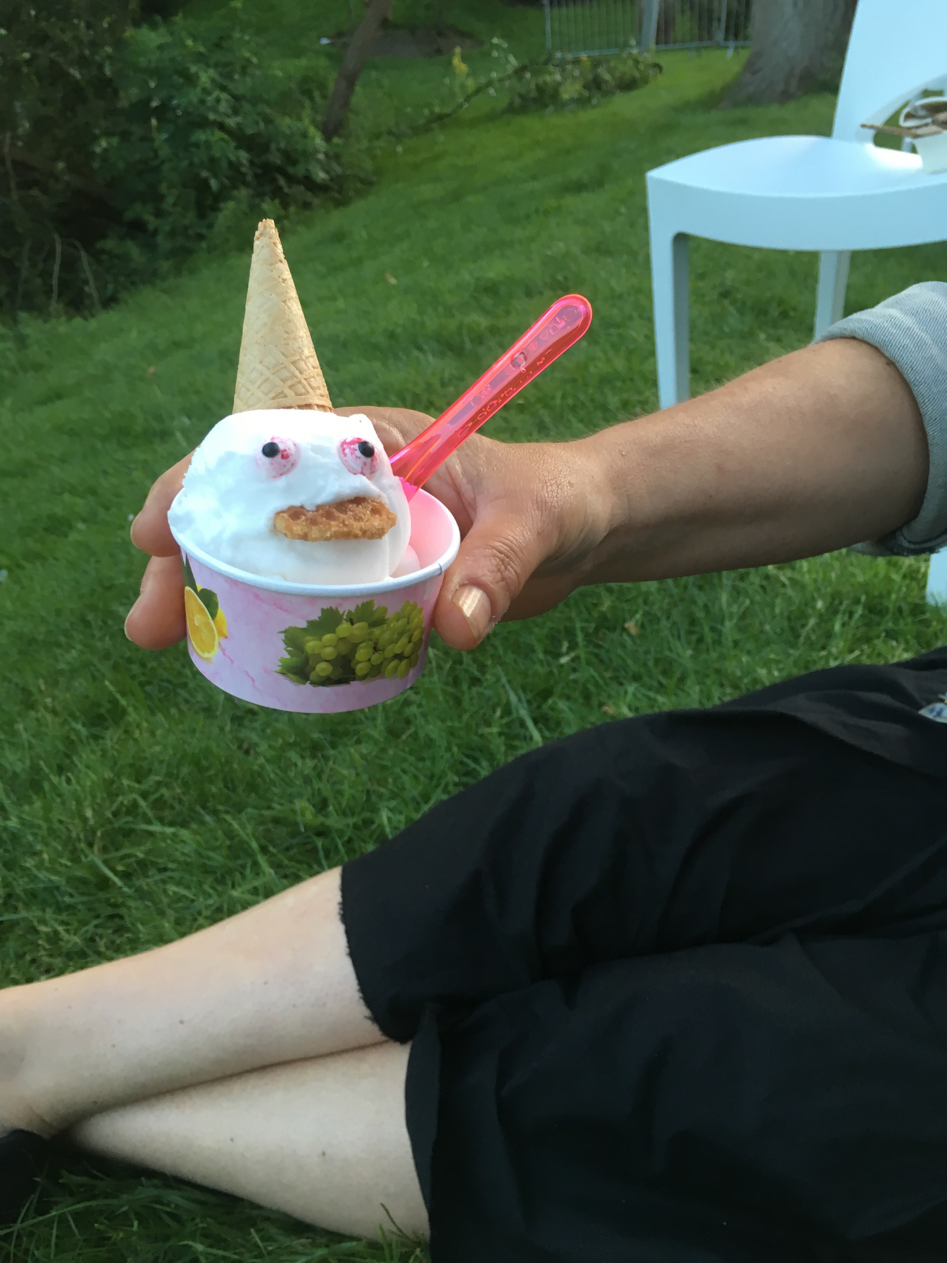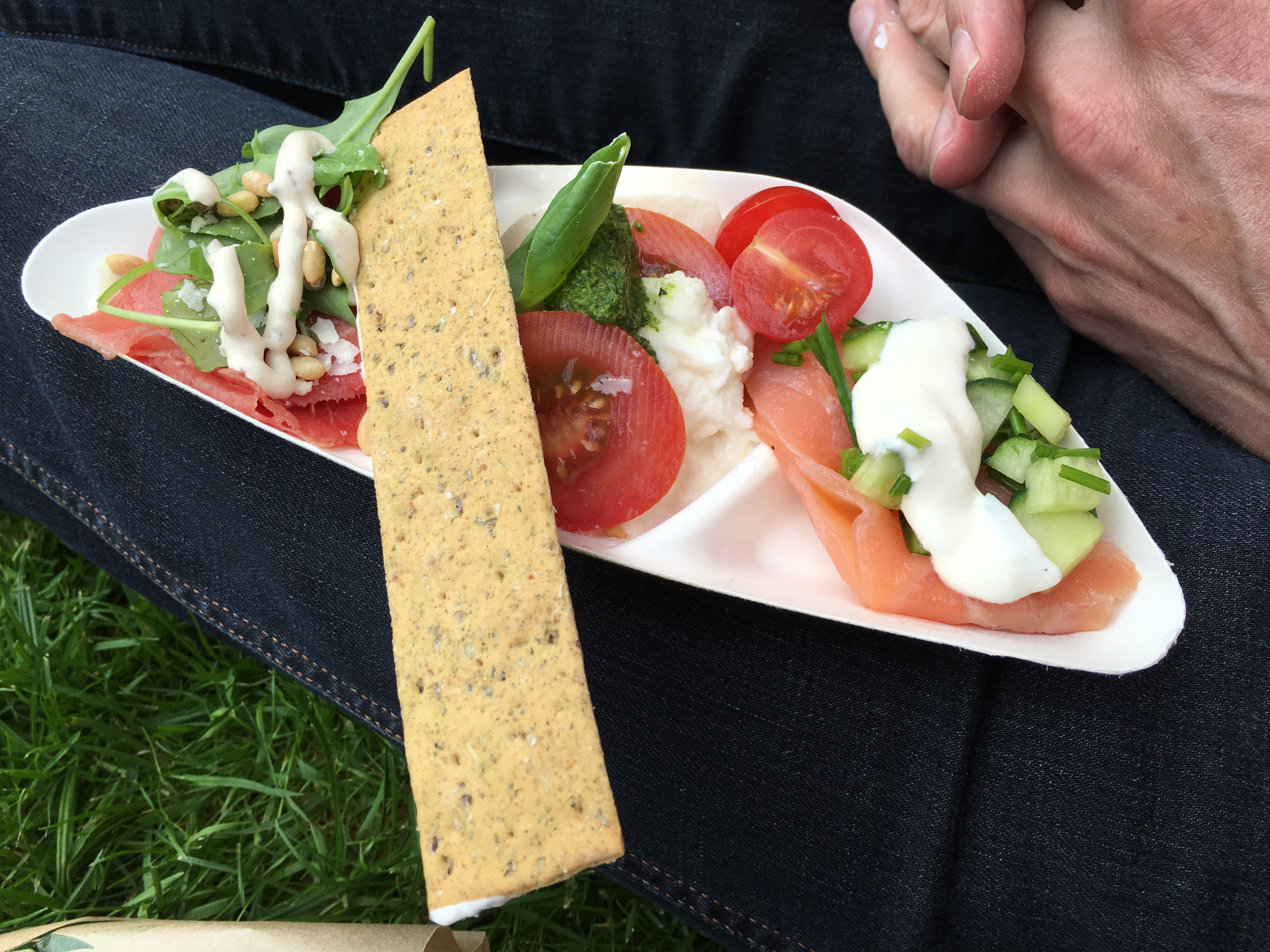 ’s Avonds zijn we met vrienden gaan eten op het festivalterrein. Kussentjes en een kleed mee en dan aan de waterkant in het zonnetje eten. Het kan slechter!