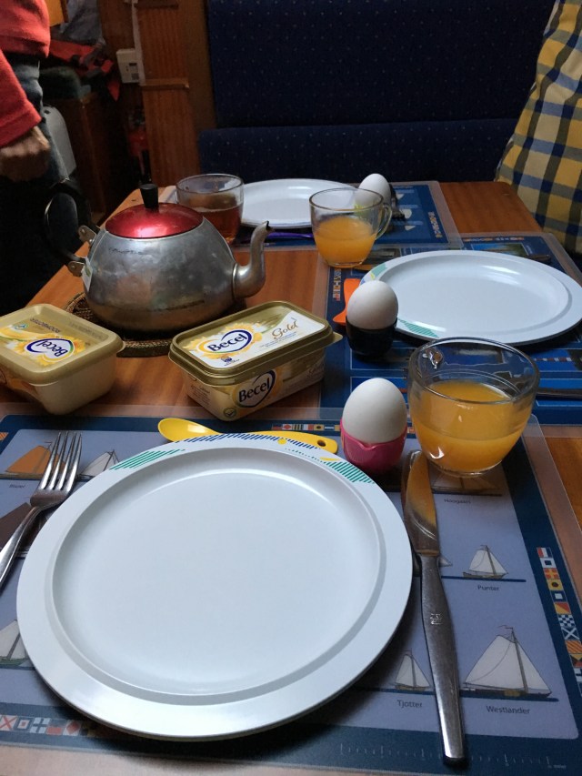 Allemaal leuk bedacht, maar poeh… zeven uur weg is best vroeg. Gelukkig was er koffie voor onderweg.