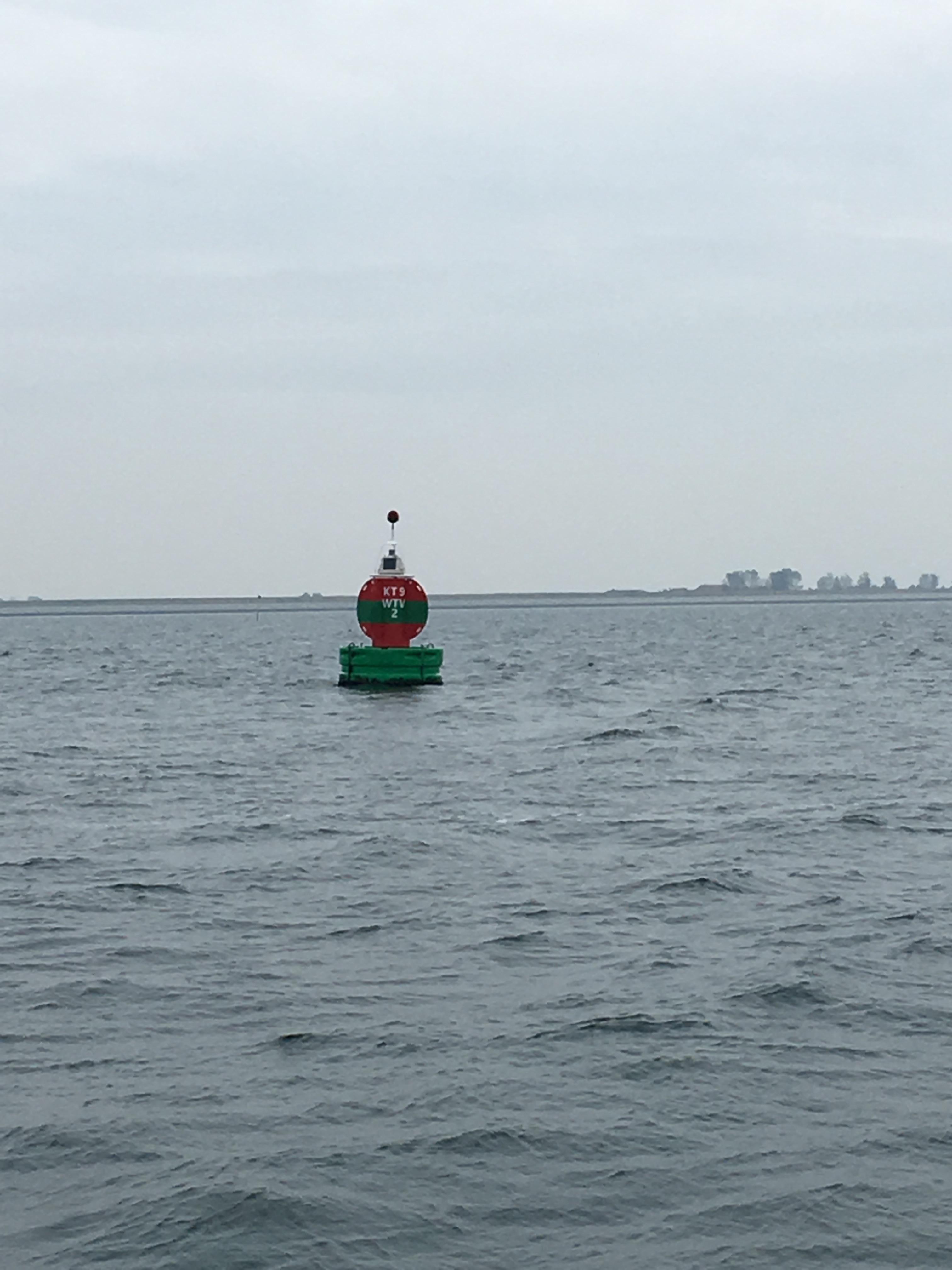 In Monnickendam aangekomen bleek het heerlijk weer. Met nauwelijks tot geen wind, dat wel. Na het te water laten en optuigen van de boot en de voorbespreking heeft trainer Ben Koppelaar de drie aanwezige boten naar de haven uit gesleept. Daar waaide het ook niet. We hebben een eiland gemaakt** en ons laten bedelven onder de vliegen. Geef mij maar zout water om op te varen…
