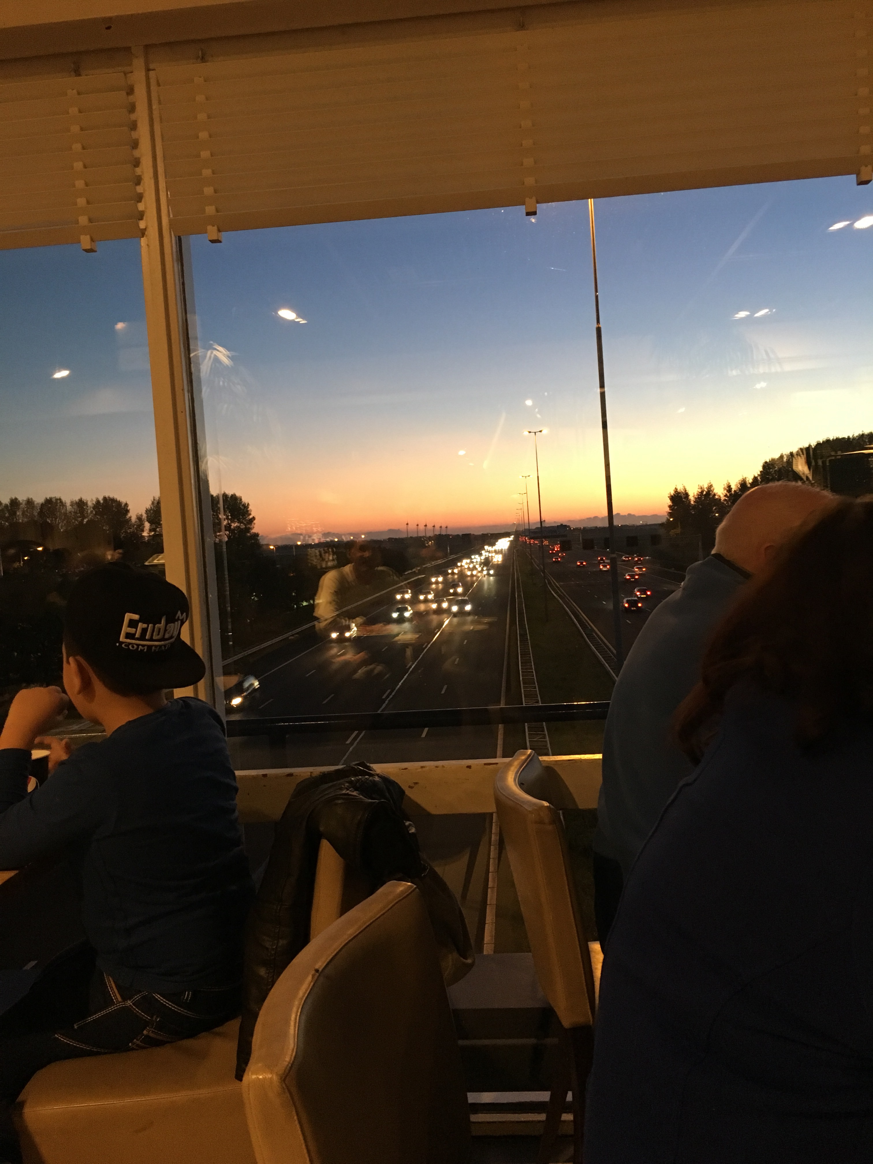 Het was inmiddels half zes, dus we besloten onderweg wat te eten. Dat werd boven de A4.