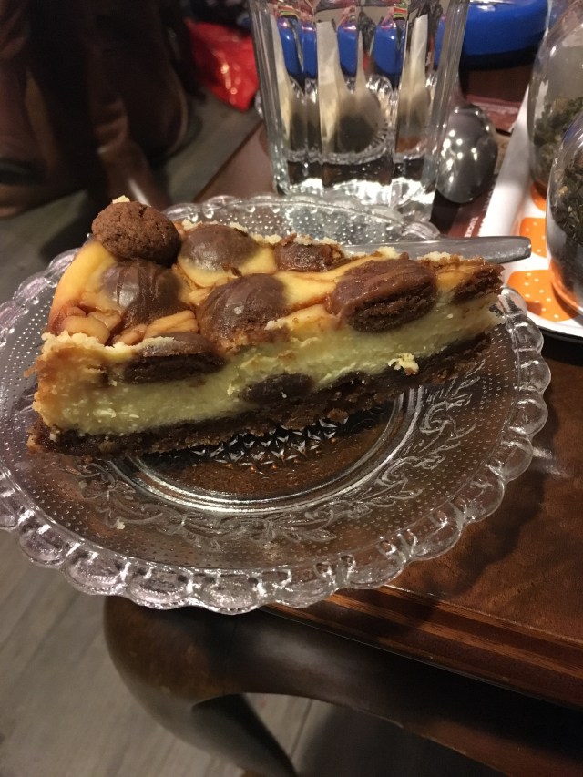Jacolien verzorgt koffie en thee voor ons, en natuurlijk -versgebakken- taart. Iedereen heeft haar favoriete taart, maar deze keer waren we erg eensgezind: iedereen nam Pepernotentaart.