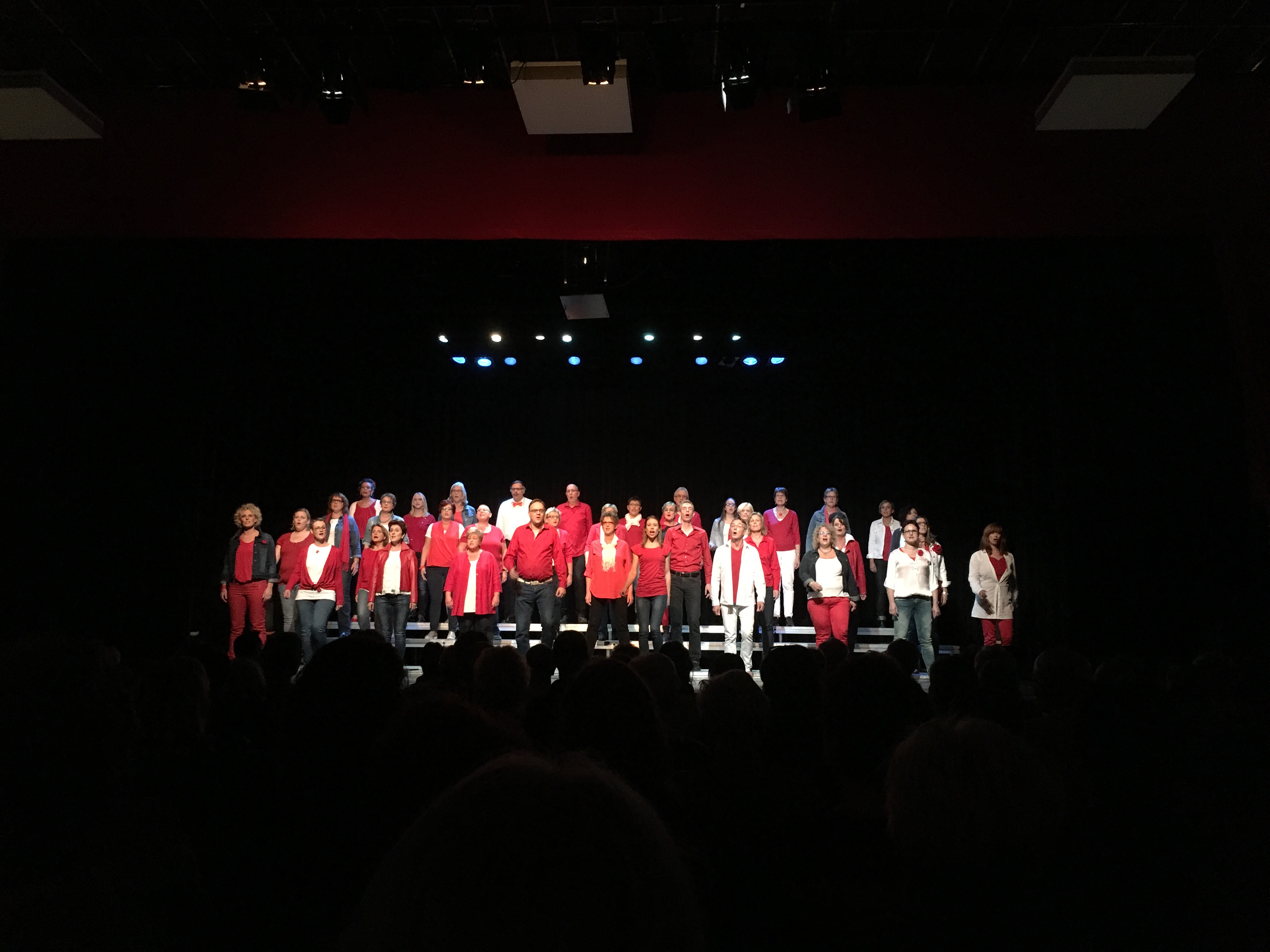 Ze zijn een beetje lastig op de foto te krijgen, want een foto is maar statisch. En dat is het koor zeker niet! Niet alleen heeft bijna elk liedje een andere opstelling, maar ook doen ze veel bewegingen bij de liedjes. En dat zie je vrij slecht op een foto…