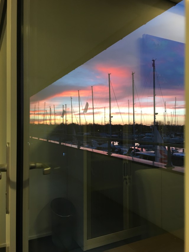 Daarna mochten we de zonsondergang nog even bekijken vanuit het kantoor van de makelaar. Mooi!