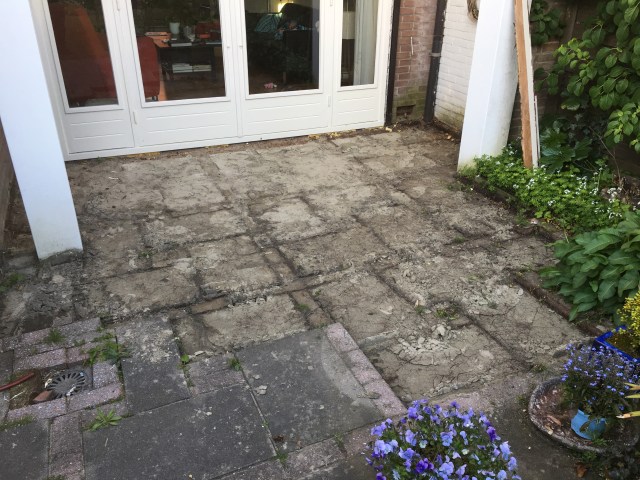 Als het goed is komen de tuinmeneren binnenkort ons terras opnieuw bestraten en een paadje leggen.
