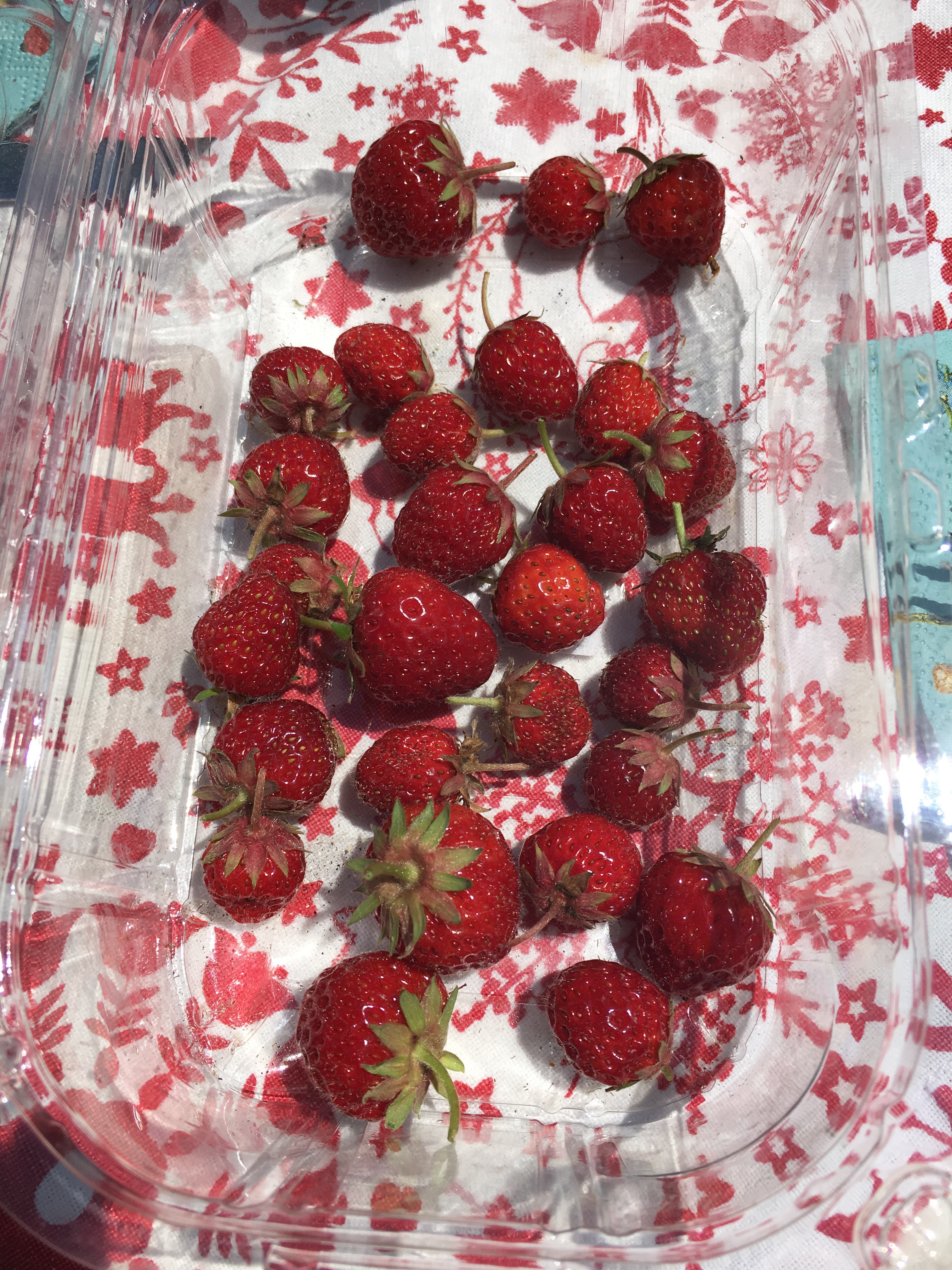 Een heerlijke salade die Lies van thuis had meegenomen met een versgeplukt toetje. Zonwarme aardbeien…. O….