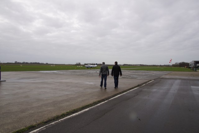 En voordat je bij de startbaan bent nog even je vliegtuig uit de modder trekken. Gelukkig is de start- en landingsbaan wel verhard…