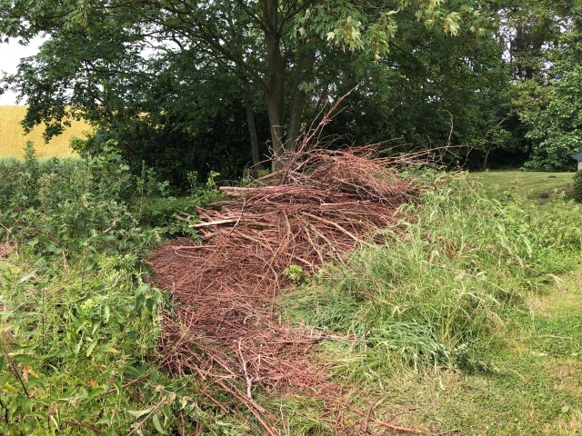 Het lijkt wel alsof er weinig gebruikt is, maar gelukkig kun je toch zien dat we best flink wat hout versjouwd hebben als je vanaf de andere kant kijkt: