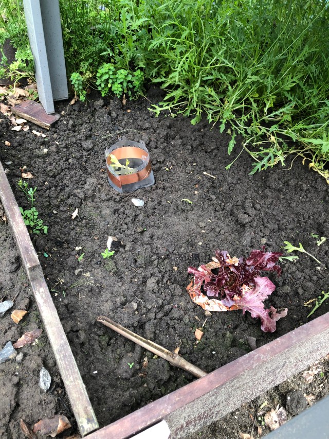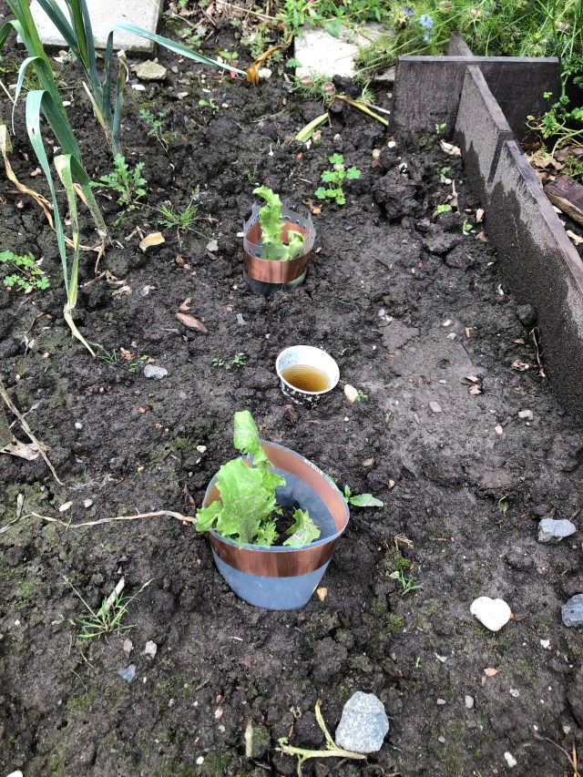 Afgelopen week bezocht ik met mams het tuincentrum om nieuwe plantjes voor de groentetuin. ’s Middag heb ik ze meteen geplant en ’s avonds maakten Meneer K:)dootje en ik biervallen: bekertjes gevuld met bier, ingegraven tussen de plantjes.