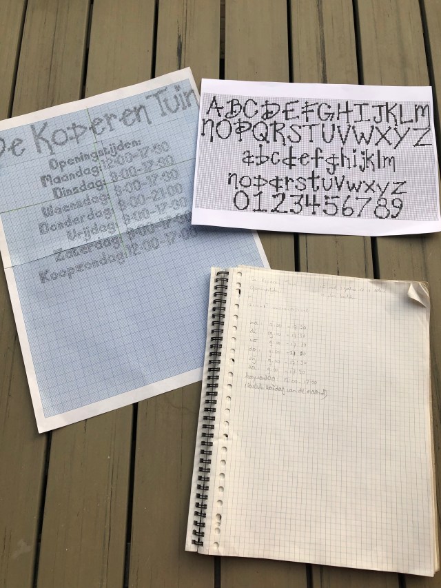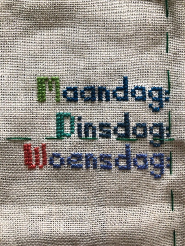 Ik vond het spannend of mijn zelfbedachte letters in geborduurde vorm goed leesbaar zouden zijn, maar: hoera!! Dat waren ze.