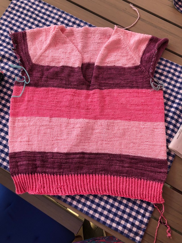 Net echt, toch? Nu alleen nog even een extra steekje in de punt van de V-hals maken omdat daar een wat te grote steek zit en dus een gaatje. Maar de trui kan mee op vakantie, waar ik hem vast niet nodig ga hebben.