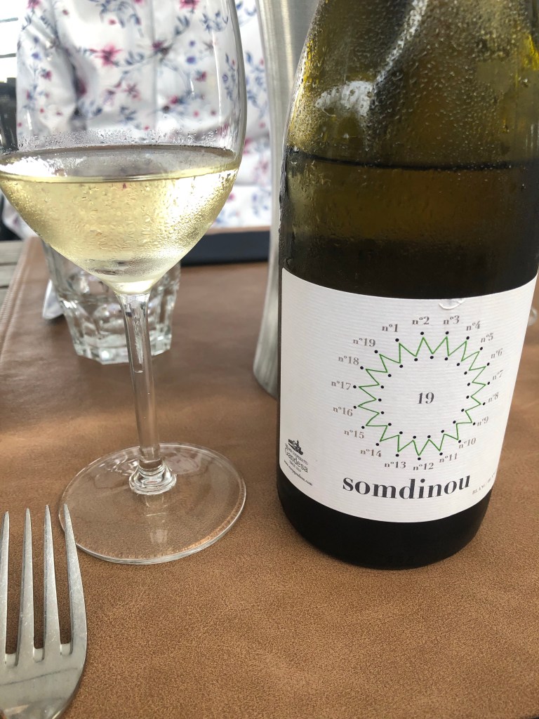 Nou, vooruit, een glas wijn. Dat hoort er ook bij. We dronken de kreeftenwijn 2021 van ‘t Kaaigat en staan volledig achter hun keuze voor deze Somdinou.