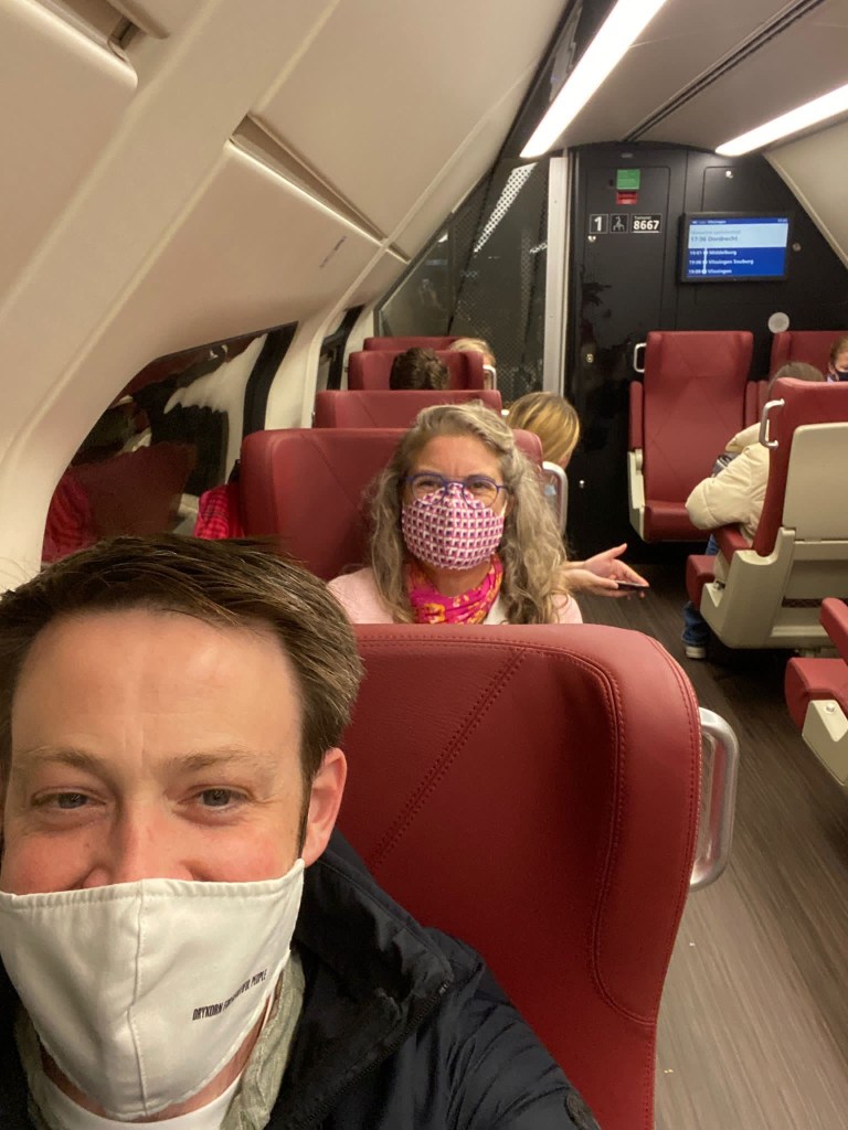 Vervolgens terug in de trein, met nog wat lekkers voor onderweg dat ik van Jacq meekreeg. En een boek, natuurlijk.