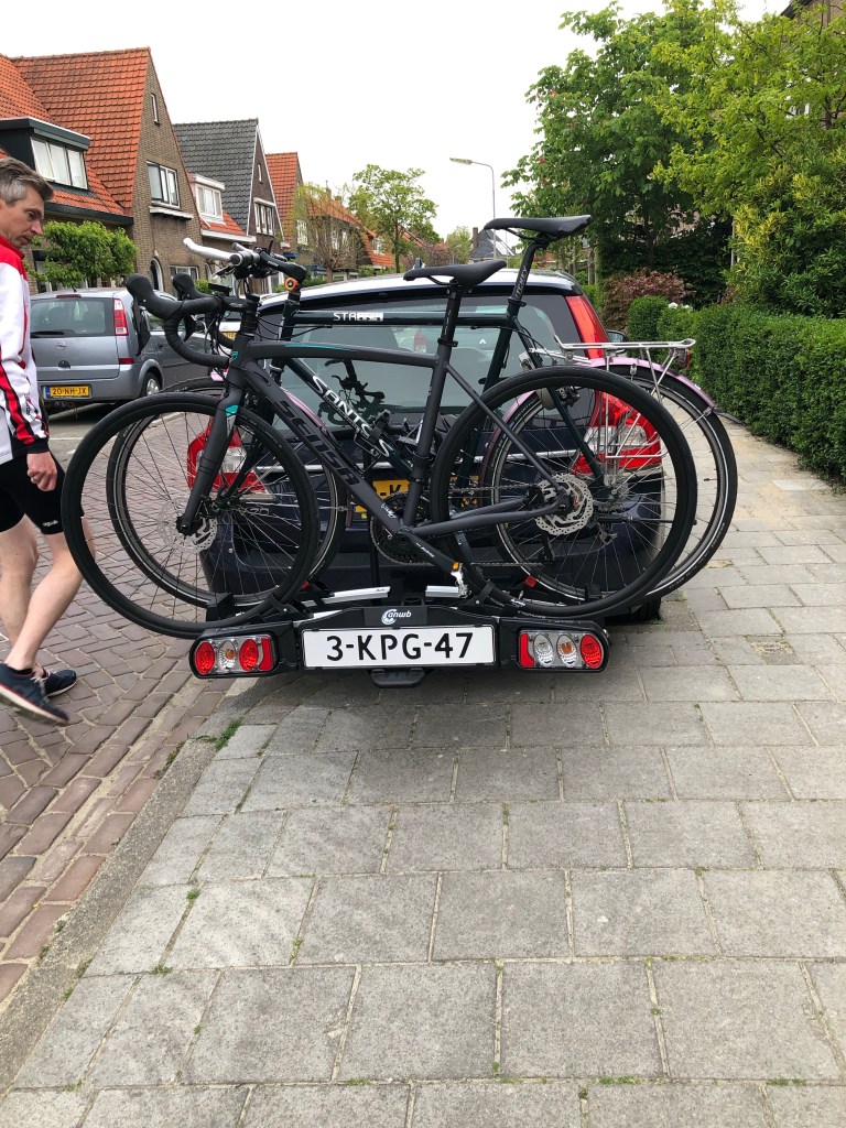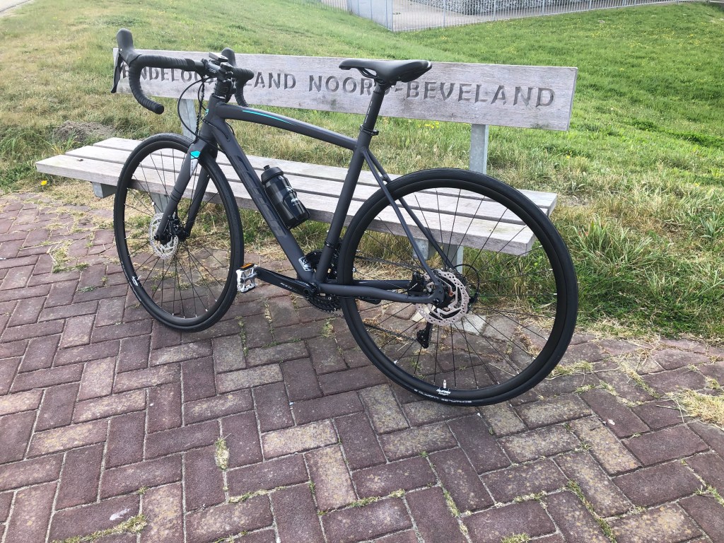 Natuurlijk wil ik ‘m meteen proberen, dus na het eten gaan de fietsen op de fietsendrager (dat was een leuke puzzel), en rijden we naar het Goese Sas. Daar onderlangs de dijk kan ik eens voorzichtig uitproberen hoe het stuurt en voelt.