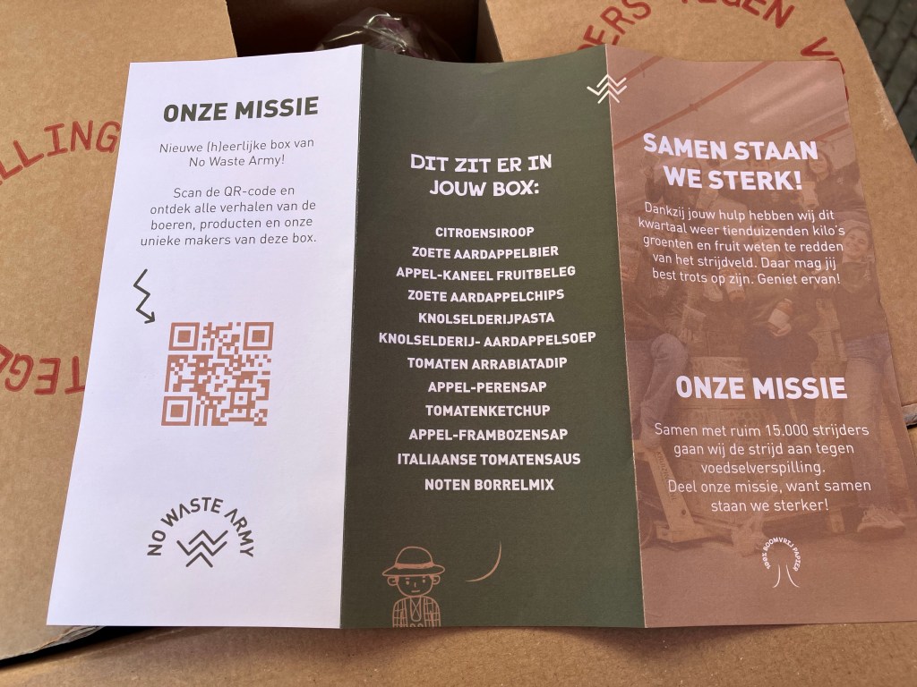 Een tijdje geleden las ik in de krant een artikel over No Waste Army, een organisatie die houdbare producten maakt / laat maken van reststromen of afgekeurde groenten en fruit. Je kunt je bij hen abonneren op de No Waste Army Box, dan ontvang je elk kwartaal een doos vol lekkers en leuks.