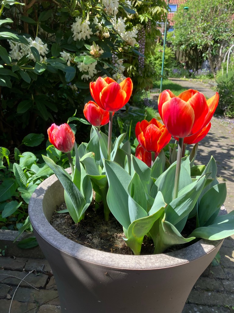 Dit voorjaar plantte ik nog een doosje End Polio Now-tulpenbollen die over waren na onze clubactie, en die bloeien nu nog schitterend: