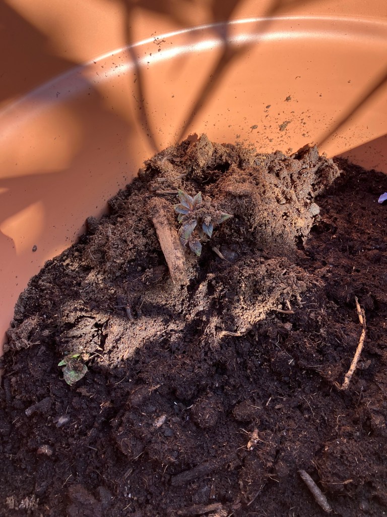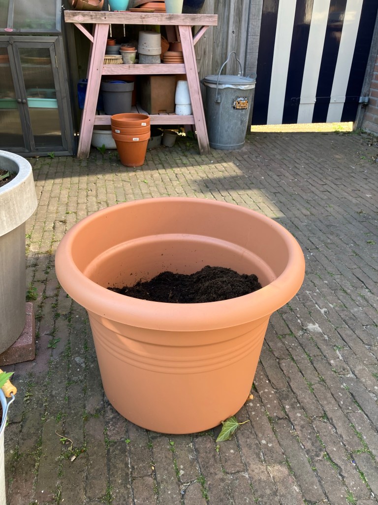 We kregen van Lies en Yep een paar overgebleven pootaardappeltjes en daarmee experimenteer ik in een (grote) pot.
