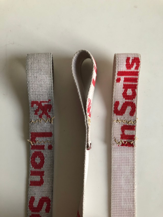 De rest van de bandjes vertoont nog helemaal geen slijtage. Zonde om ze weg te doen dus. Ik bedacht dat ik het lusje eraf kon snijden en een nieuw lusje kon naaien. De bandjes zijn lang genoeg.