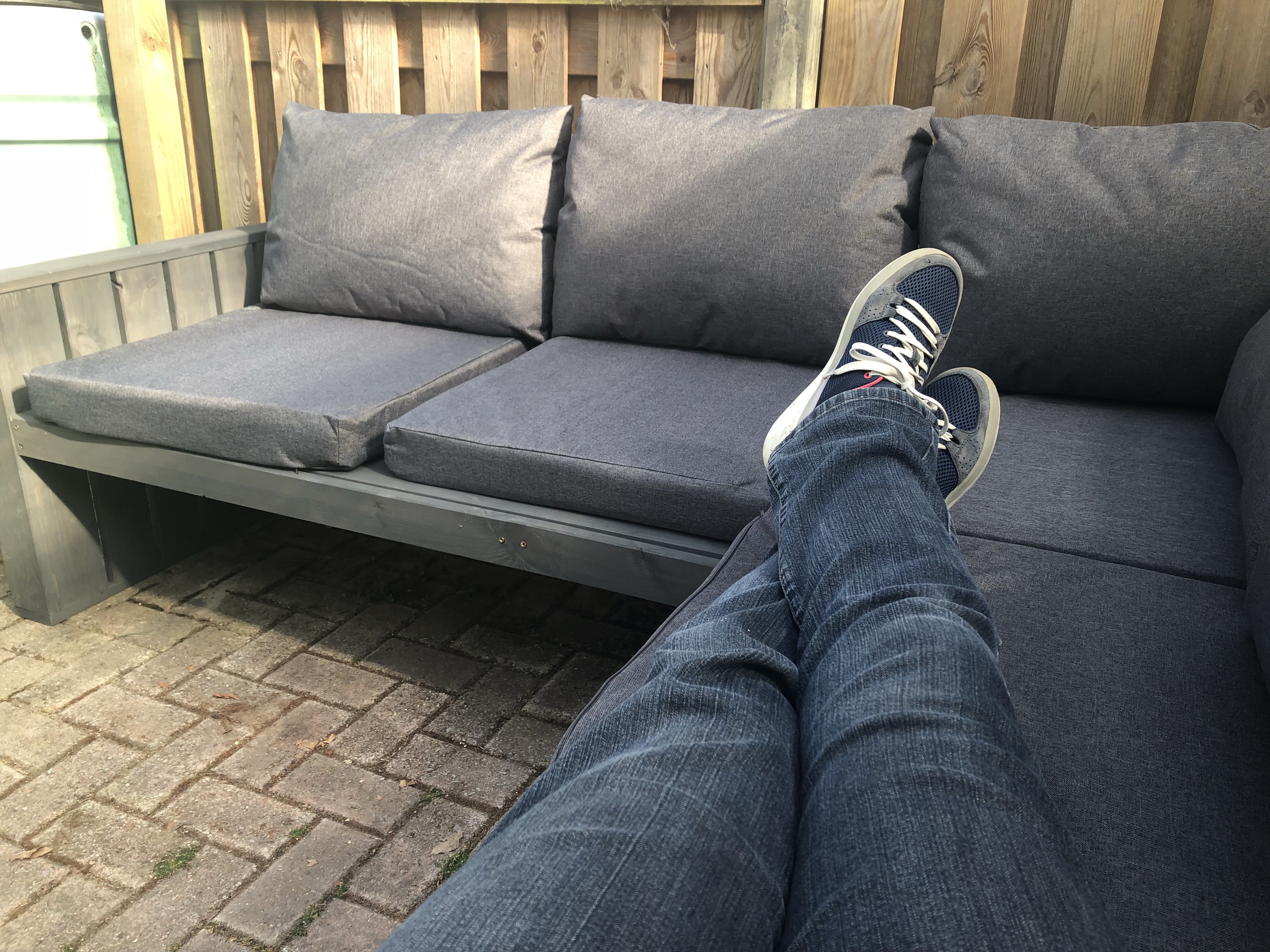 (Ander ‘voordeel’: sjouw de naaimachine naar buiten en later weer naar binnen en je hebt meteen je krachttraining te pakken.)