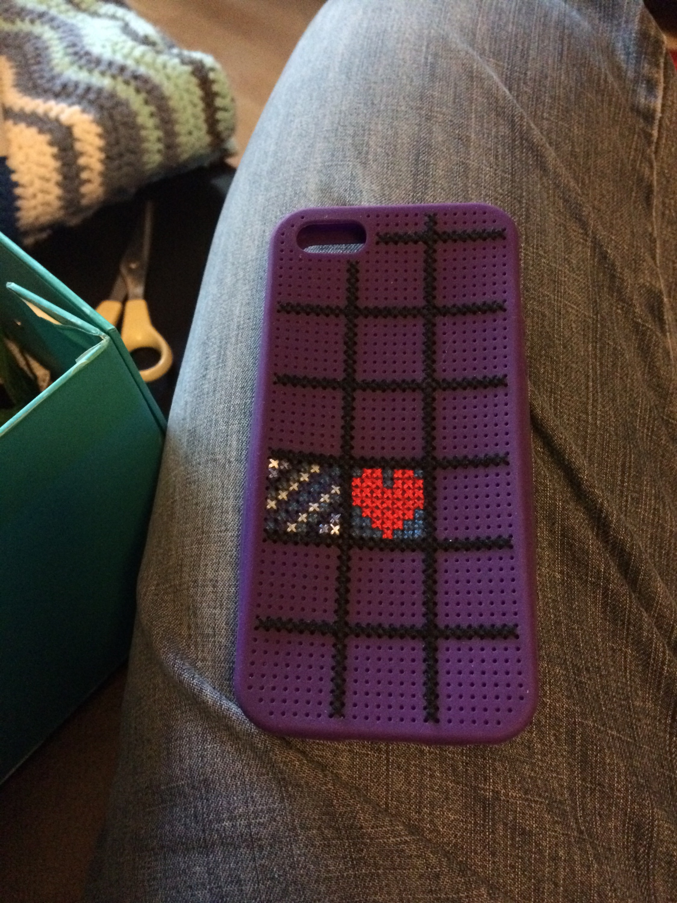 En nu ben ik dus aan het borduren. Want ja, met cadeautjes moet je zo snel mogelijk gaan spelen.